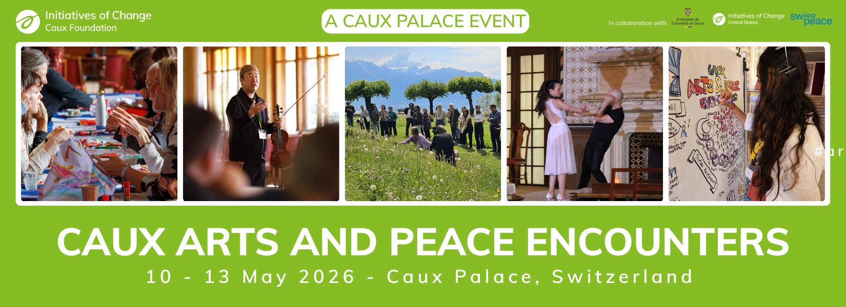 We are excited to welcome artists, peacebuilders, educators, and community leaders from 10 - 13 May 2026 to the second edition of the Caux Arts and Peace Encounters (CAPE) at the Caux Palace, Switzerland, exploring how creativity and the arts can transform conflict, build empathy, and inspire innovative solutions for a more just and peaceful world.