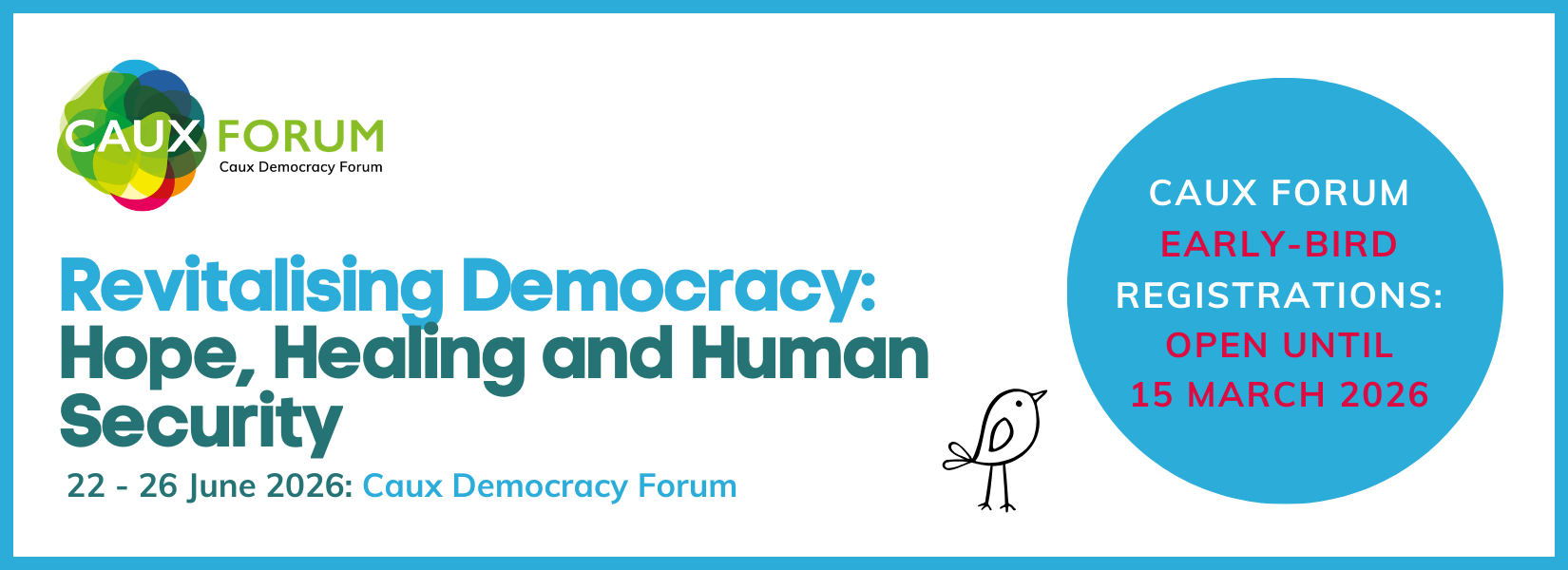 Join us in Caux, Switzerland, from 22 to 26 June 2026, for the third edition of the Caux Democracy Forum, opening with a special Opening Ceremony at the Maison de la Paix in Geneva (22 June). The good news? Early-bird rates are still available until 15 March 2026.