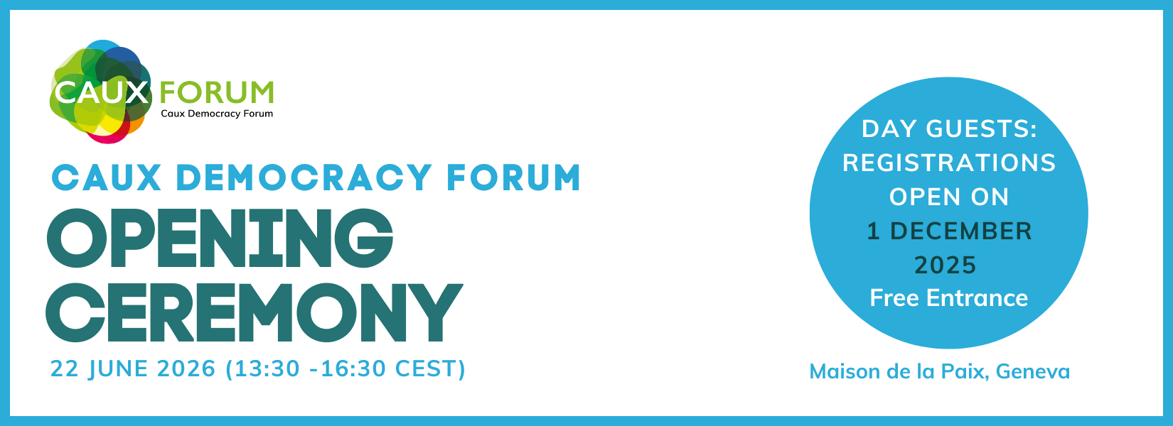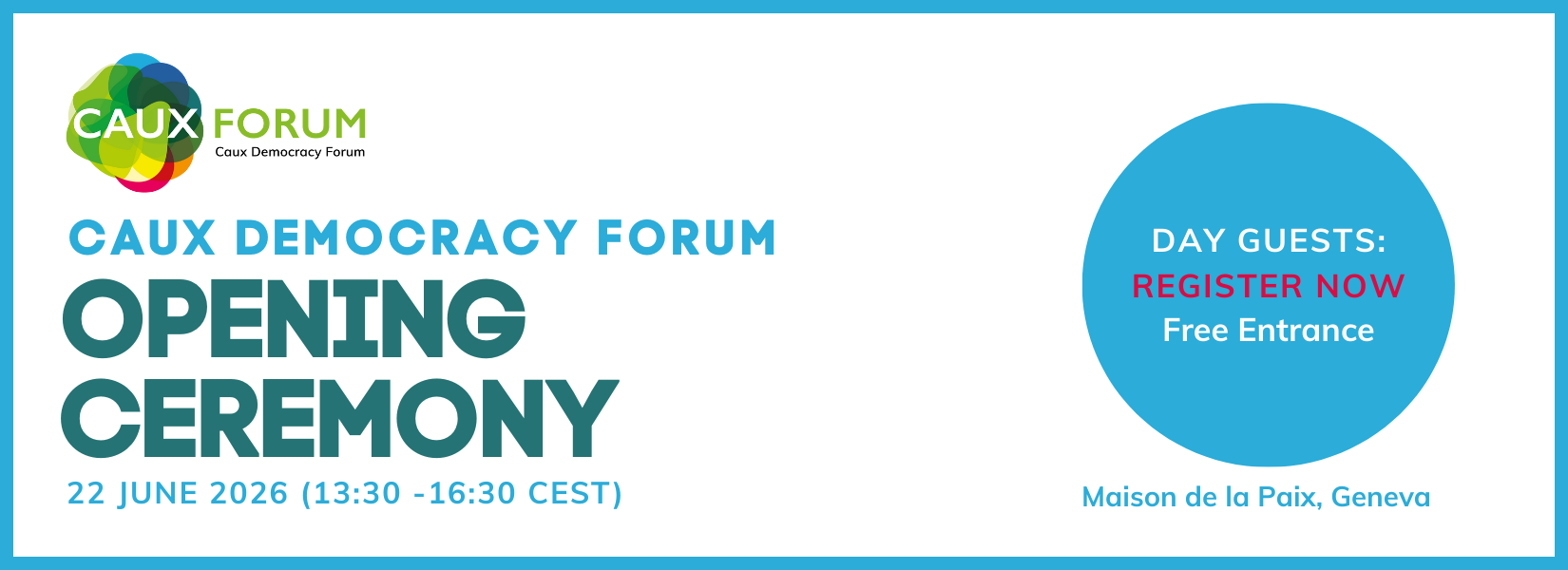 Join us for the Opening Ceremony of the Caux Democracy Forum, launching a transformative week dedicated to revitalising democracy through hope, healing and human security. The ceremony will take place on 22 June in the heart of international democratic and human rights institutions in Geneva, in the iconic amphitheatre of La Maison de la Paix.
