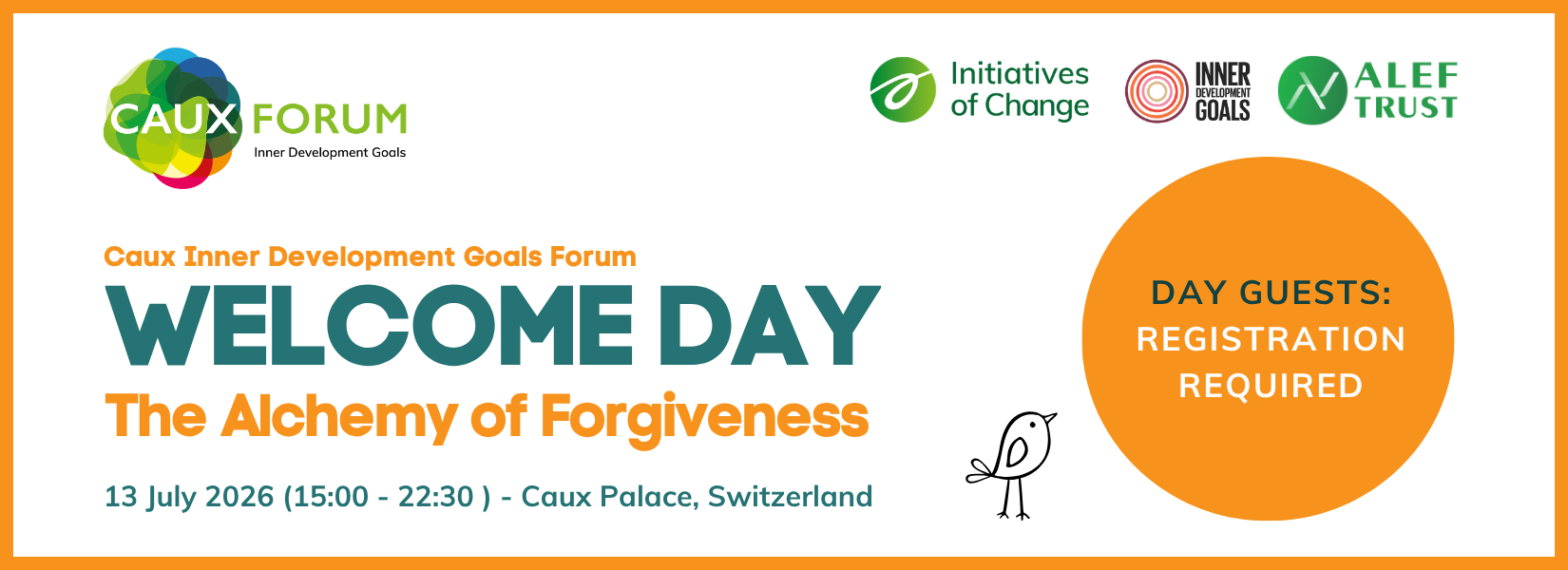 Step into the Caux Inner Development Goals Forum 2026 with a powerful opening experience: the Welcome Day, taking place on 13 July 2026 (15:00–22:30).