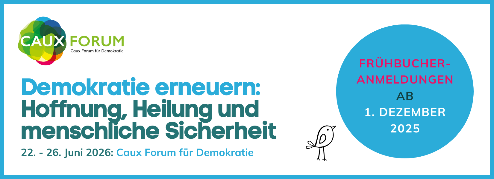 Das Caux Democracy Forum 2026 ist Teil des Caux Democracy Programme und lädt Changemaker, politische Entscheidungsträger, Unternehmer und engagierte Bürger ein, sich zusammenzufinden, um die Demokratie wiederzubeleben, Hoffnung zu erneuern, Heilung zu fördern und die Sicherheit der Menschen zu stärken.