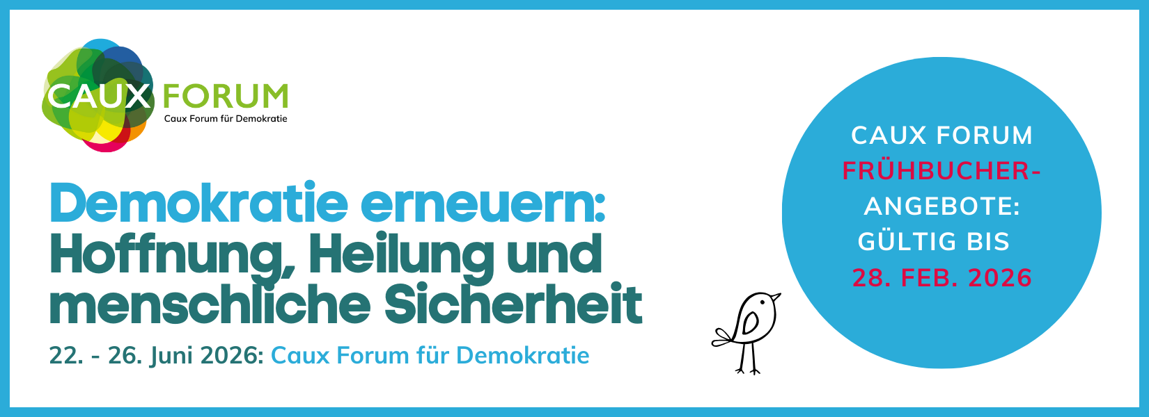 Das Caux Forum für Demokratie 2026 ist Teil des Caux Demokratie-Programms und lädt Changemaker, politische Entscheidungsträger.innen, Unternehmer.innen und engagierte Bürger.innen dazu ein, gemeinsam Demokratie neu zu beleben, Hoffnung zu stärken, Heilung zu fördern und menschliche Sicherheit auszubauen.