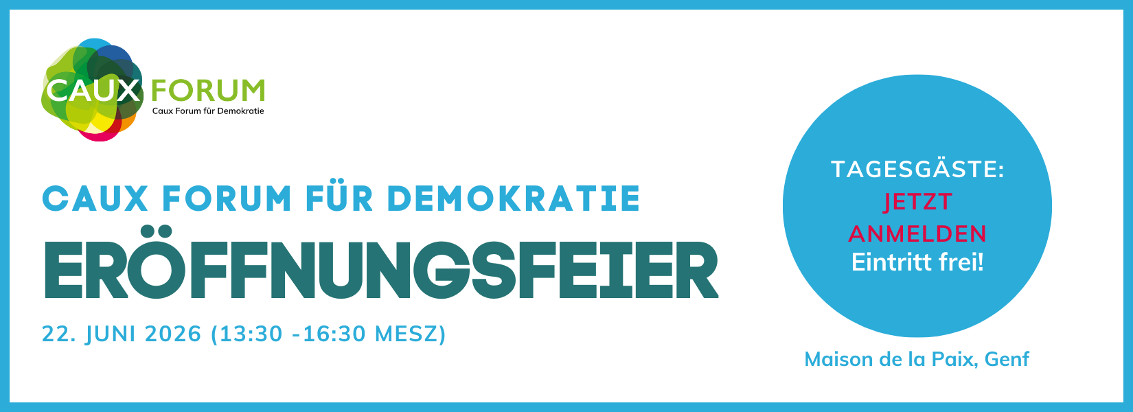Nehmen Sie an der Eröffnungszeremonie des Caux Forums für Demokratie teil - der Beginn einer Woche der Veränderung, die der Erneuerung der Demokratie durch Hoffnung, Heilung und menschliche Sicherheit gewidmet ist. Die Zeremonie findet am 22. Juni im Herzen der internationalen Demokratie- und Menschenrechtsinstitutionen in Genf statt, im berühmten Amphitheater des Maison de la Paix.