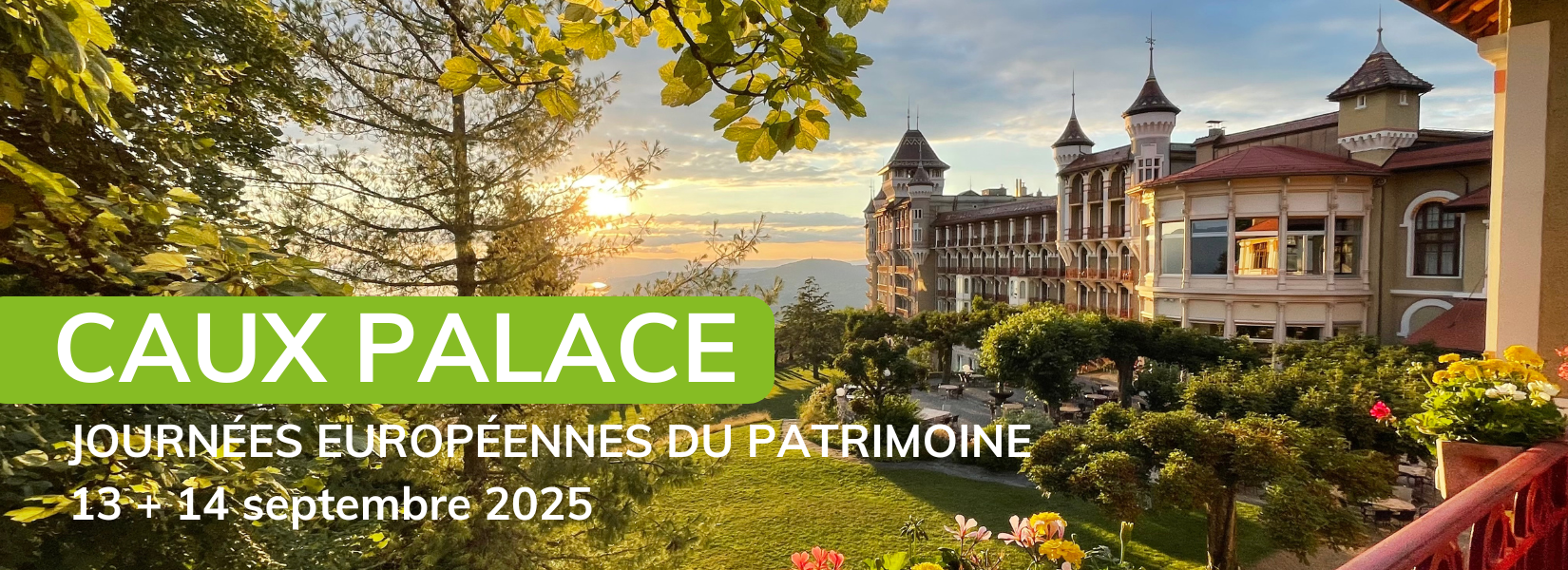 Du samedi 13 au dimanche 14 septembre 2025, venez célébrer les Journées européennes du patrimoine avec nous au Caux Palace ! Découvrez ce joyau de la Belle Époque, désormais classé monument historique d’importance nationale, profitez de sa vue imprenable depuis les hauteurs de Montreux dans le village de Caux et explorez notre programme culturel et nos activités pour petits et grands !
