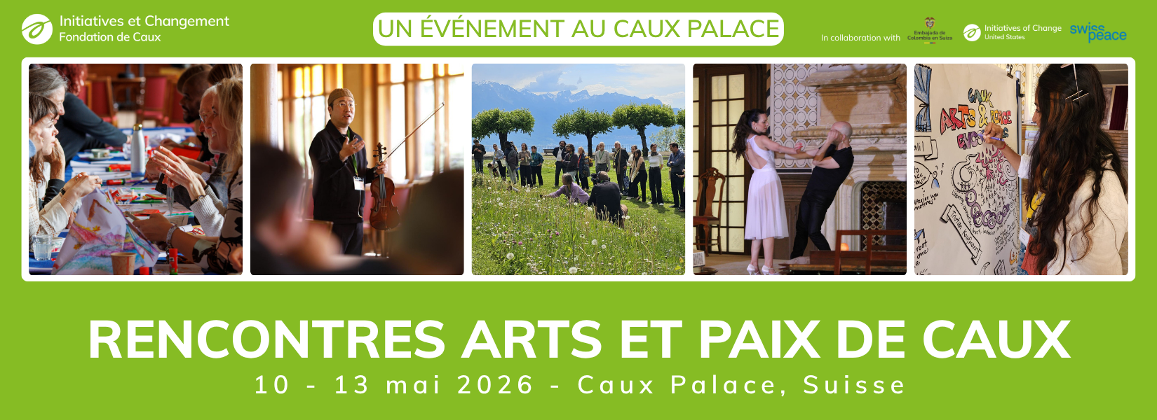 Nous sommes ravi.e.s d'accueillir des artistes, des artisan.e.s de la paix, des enseignant.e.s et des leaders communautaires du 10 au 13 mai 2026 pour la deuxième édition des Rencontres Arts et Paix de Caux (CAPE) au Caux Palace, en Suisse. Nous explorerons comment la créativité et les arts peuvent transformer les conflits, développer l'empathie, et inspirer des solutions innovantes pour un monde plus juste et pacifique.