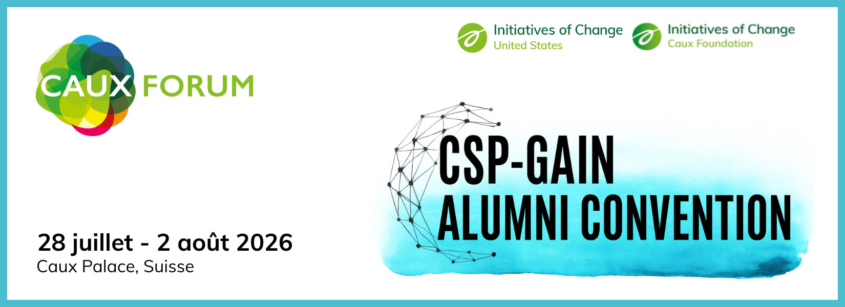 Êtes-vous un.e alumni Caux Scholar ? Si oui, alors cet événement est fait pour vous ! La Convention CSP - Gain Alumni (28 juillet - 2 août 2026) réunira à l'été 2026 des Caux Scholars des trois dernières décennies pour une réunion internationale et intergénérationnelle à Caux, en Suisse.