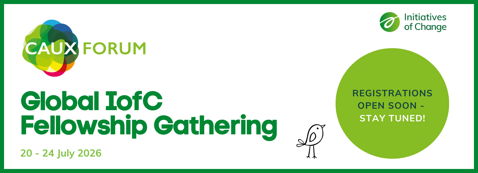 The Global IofC Fellowship Gathering (20–24 July 2026) is a unique opportunity to reconnect and energize the worldwide IofC community. This gathering will provide space for reflection, connection, and direction for all those deeply committed to the values and work of Initiatives of Change (IofC).